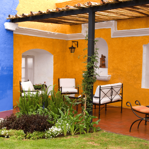 A pergola or canopy can provide a covered exterior for the property whether over your entrance, the area in your front yard where the car is stored, or the patio area.